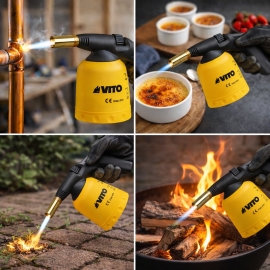 Lampe à souder VITO Allumage piezo coque ABS + 4 Cartouches gaz 190gr...