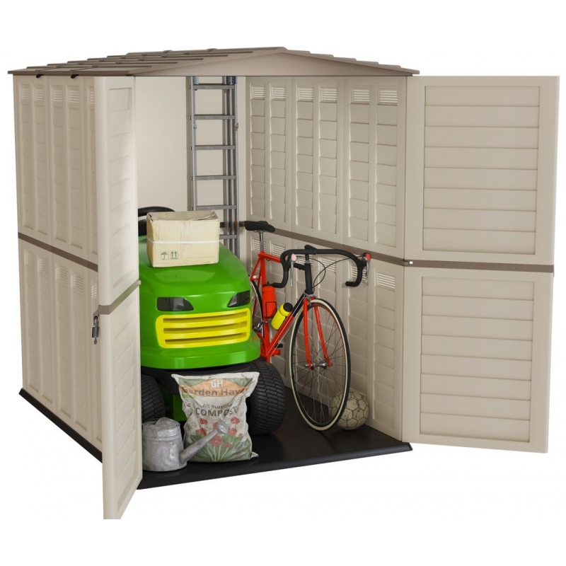Abri de jardin beige en polypropylène 100 % recyclé, robuste et sans entretien. Avec une surface de 3,14 m² et un volume de 5500 L, il est parfait pour ranger outils, vélos, mobilier d’extérieur ou même une moto. Sa double paroi renforcée et sa structure anti-torsion résistent aux intempéries, tandis que ses 8 grilles de ventilation assurent un intérieur sec et aéré toute l’année. Montage rapide en 25 minutes et design beige moderne qui s’intègre dans tous les jardins.