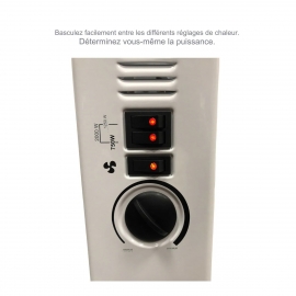 - 3 Puissances de chauffe réglables : sélectionnez la puissance souhaitée (750W, 1250W ou 2000W) selon la taille de la pièce ou la température désirée.