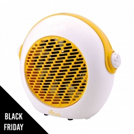 Chauffage soufflant vertical NIKLAS 2000W. Corps ABS. 2 Puissances réglables 1000/2000W. Thermostat 5 à 35°C. Dimensions 23x14x27 cm. Poids : 1.2 kg. Couleur Blanc.