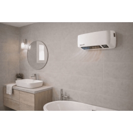 Le radiateur électrique d'appoint peut être fixé au mur ou posé sur son support, s’adaptant à toutes les configurations. Son indice de protection IPX2 le rend parfaitement adapté aux pièces humides comme la salle de bain.