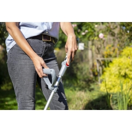 Poignée principale réglable sur 4 positions avec revêtement Softgrip pour une prise en main confortable. Poignée avant ajustable en hauteur pour une posture naturelle et sans effort pendant la tonte. Interrupteur de sécurité intégré pour une utilisation sûre.