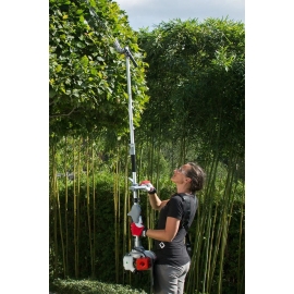 Avec ses accessoires interchangeables, passez facilement de la débroussailleuse à l’élagueuse, au taille-haie ou à la perche pour travailler en hauteur jusqu’à 2,88 m. La poignée Softgrip et la bandoulière renforcée offrent un confort optimal, même lors d’usages prolongés.