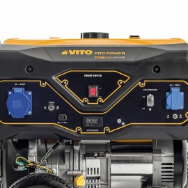 Groupe électrogène Essence VITO Monophasé 4T 15 CV 5.5 kW 420 cc. Fréquence 50 Hz. Régulateur de tension: AVR. Démarreur manuel. Capacité du réservoir 25L. Capacité du réservoir d'huile: 1,1 L. Vitesse moteur : 3000 tr/min.