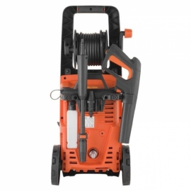 Nettoyeur haute pression 140 bar 2000W Black Decker. Débit max 440 l/h. Température d'eau jusqu'à 50 °C. Livré avec 8 accessoires :1 lance haute pression, 1 pistolet 1 tuyau flexible 8 m, 1 buse jet réglable, 1 Rotobuse, 1 brosse de sols Patio Cleaner Deluxe Chem, 1 brosse fixe, 1 réservoir de détergent. Enrouleur intégré avec système de blocage. Dimensions : 39 x 31,2 x 78 cm. Poids 9,97 kg