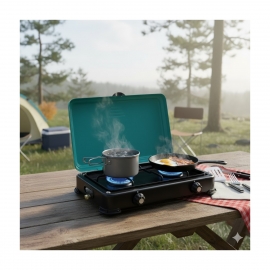 Réchaud à gaz 2 feux INTEC GOLD II - 3200W, idéal pour cuisiner facilement à la maison, en camping ou en extérieur. Compact, puissant et pratique, il offre une chauffe rapide et homogène grâce à ses deux brûleurs en fonte amovibles de 1500 W et 1700 W. La grille en fonte assure stabilité et robustesse, tandis que la molette permet un réglage précis de la flamme. Sa connexion à vis normalisée offre une installation simple et sûre, compatible avec le gaz butane ou propane (non compatible gaz de ville).