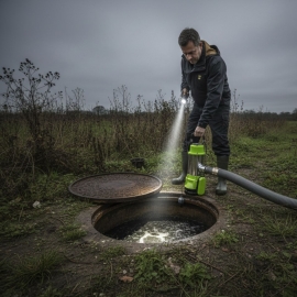 - Puissance 750W & débit 24000 L/h : évacuation rapide des eaux chargées