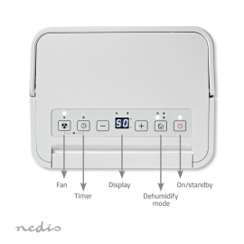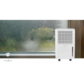 Le déshumidificateur d'humidité Nedis 10 L/jour élimine l’humidité, prévient moisissures et odeurs, et améliore la qualité de l’air. Idéal pour pièces jusqu’à 100 m³. Hygrostat automatique, 4 modes : déshumidification, auto, séchage du linge, ventilation,pièces humides , buanderies. Réservoir 2,1 L, arrêt auto, 39 dB, 245 W, compact et mobile. Dimensions 27 x 20,5 x 42,5 cm. Poids 8,5 kg