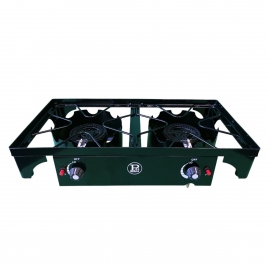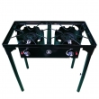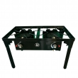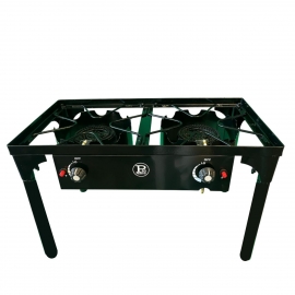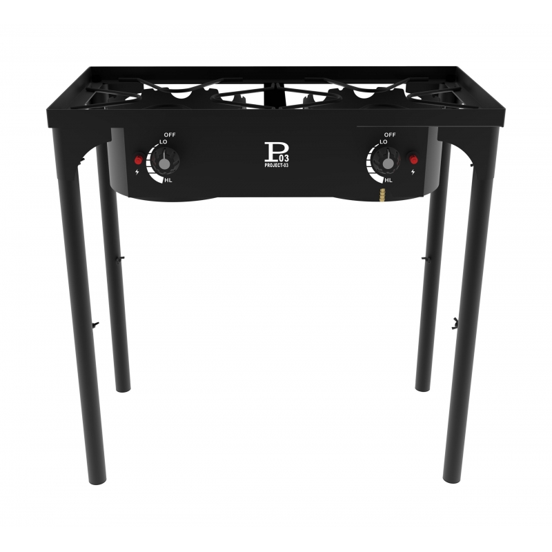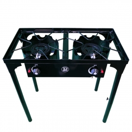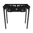 Réchaud à gaz 2 feux 4 pieds modulable en 3 hauteurs 9000W PROJECT. Cuisinière gaz en Acier Émaillé robuste, 2 bruleurs en fonte véritable Ø 145 mm avec allumage piezo et réglage de flamme Diamètre des injecteurs 1.0mm Consommation gaz : 327gr/h Compatible avec gaz Propane ou Butane Pression 28-30/37mbar (détendeur et tuyau non fournis). Connexion tétine. Dimensions : 74 x 40 x H80 cm. Poids 7.5 kg