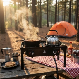Polyvalent, transportable et compatible propane/butane, la cuisinière à gaz convient parfaitement aux sorties camping, réceptions, marchés, food-trucks et cuisines extérieures.