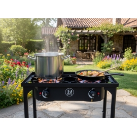 Le réchaud à gaz PROJECT 2 feux est la solution idéale pour cuisiner en plein air avec puissance et confort. Doté de 2 brûleurs en fonte et d’une puissance totale de 9000W, il assure une chauffe rapide et homogène, parfaite pour les grandes préparations. Sa structure en acier émaillé garantit robustesse et stabilité, même lors d’un usage intensif.