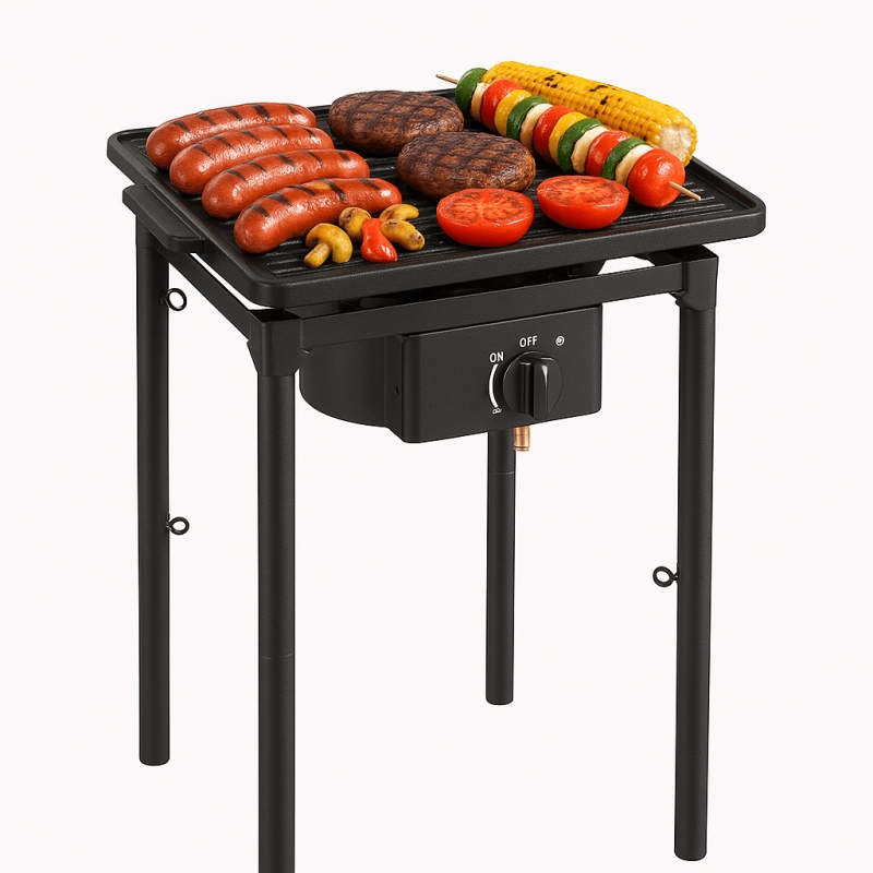 Son brûleur en fonte 4500W avec allumage piezo offre une chauffe rapide et précise, idéale pour mijoter, saisir ou maintenir au chaud tout type de plat. La plaque grill en fonte 40x40 cm, fournie avec le réchaud, transforme l’ensemble en véritable poste de grillade, barbecue : marquage parfait, diffusion homogène de la chaleur et grande surface pour cuisiner viandes, poissons, légumes ou brochettes.