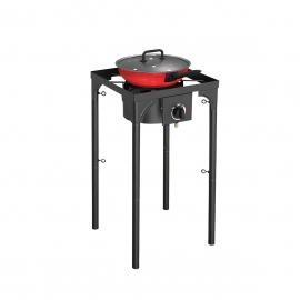 Le réchaud gaz INTEC se distingue par sa modularité unique et son confort d’utilisation. Ses trois hauteurs ajustables permettent d’adapter instantanément la position de cuisson : en mode haut pour préparer paellas ou légumes debout, en position intermédiaire pour surveiller facilement les grandes casseroles, ou en version compacte posée sur une table.
