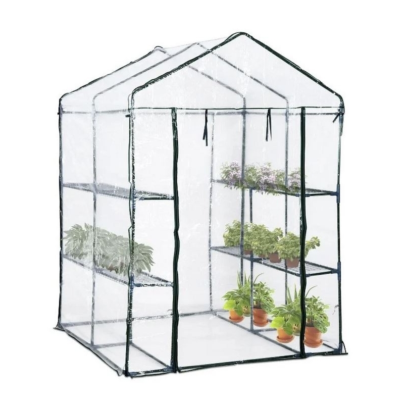 Elle est équipée de quatre étagères avec une hauteur d'étage de 45 cm, offrant un espace généreux pour organiser diverses plantations. La bâche en PVC renforcée transparente permet une pénétration optimale de la lumière tout en protégeant vos plantes contre le gel et les intempéries. La porte zippée de dimensions 150 x 80 cm, avec fermeture éclair et système d'enroulement, facilite l'accès et assure une ventilation adéquate, essentielle pour le bien-être de vos plantes.
