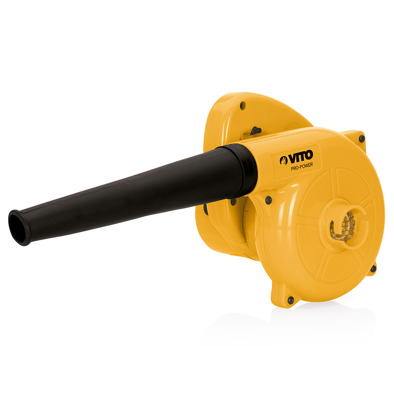 Aspirateur-souffleur électrique VITO PRO-POWER 600W. Tension d'alimentation : 230V. Verrouillage de l'interrupteur marche/arrêt. Tube en caoutchouc. Sac à Feuilles , poussière et copeaux 0.7 litre souple inclus. Vitesse de rotation 120 km/h. Débit d'air maximum : 2,5 m3/s. Vitesse de rotation à vide : 16000 tours/min. Niveau de puissance sonore : 98 dB(A). Dimensions : 43 x 17 x 20 cm. Poids 1.5 kg.