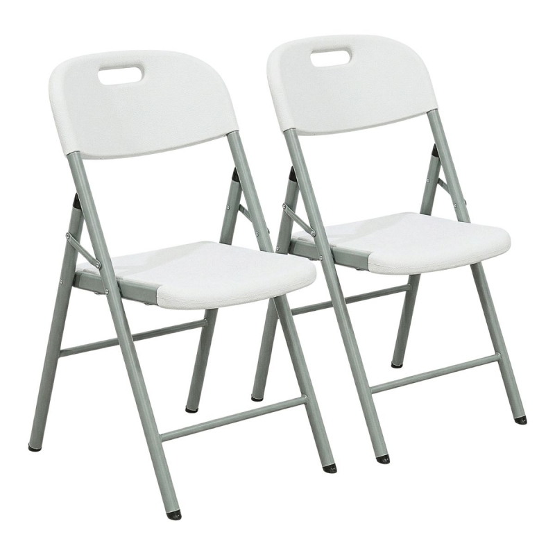 Lot de 2 chaises pliantes blanches KZ GARDEN intérieur et extérieur. Assise large et dossier solide pour un bon confort d'assise. Utile pour terrasse, jardin, camping, réception, restaurants. Chaise d'appoint pliable pour gain de place, facile à ranger. Dimensions ouverte : 45.5 x 51 x 85 cm
