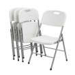 Lot de 4 chaises pliantes blanches KZ GARDEN intérieur et extérieur. Assise large et dossier solide pour un bon confort d'assise. Utile pour terrasse, jardin, camping, réception, restaurants. Chaise d'appoint pliable pour gain de place, facile à ranger. Dimensions ouverte : 45.5 x 51 x 85 cm
