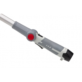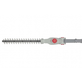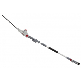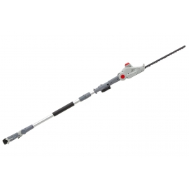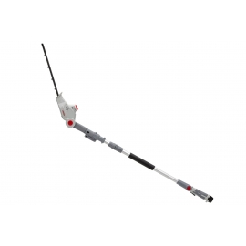 Taille-haies sans fil avec perche télescopique à batterie Lithium 12V 2.5Ah incluse (autonomie max. 50 minutes) et chargeur (temps de charge env. 5h) Épaisseur de coupe 16 mm, réglage de l'angle de coupe sur 4 positions jusqu'à 135° Équipé de lames trempées et affutées au laser Poignée réglable 4 positions. Mat télescopique réglable en longueur de 1.80m à 2.35m, hauteur de travail de 3.50m tête de coupe amovible. Poignée Soft Grip poids 2.5 kg.