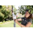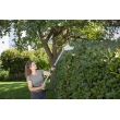 - Taille-haie télescopique longue portée : manche réglable jusqu’à 2,35 m, hauteur de travail 3,50 m.