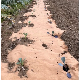 - Écologique et biodégradable : Contrairement aux paillis en plastique, la toile de paillage est entièrement biodégradable, se décomposant naturellement dans le sol à la fin de la saison de culture, réduisant ainsi les déchets. Elle offre une alternative aux toiles de paillage plastiques et ne nécessite donc pas de l'enlever des sols.