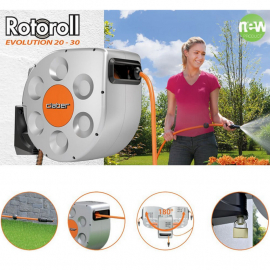 Dévidoir mural CLABER automatique 20m roll-up avec rembobinage automatique Tuyau indéformable diam 12 mm Pivote à 180 degrés -