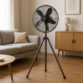 Ventilateur 3 pieds 50W avec hélice métal diamètre 45 cm LIFETIME AIR Produit Haute qualité. Grande Stabilité grâce au trépied. Parfait pour brasser l'air et rafraîchir votre pièce Doté de 3 vitesses. Fonction oscillante et Inclinable. Couleur : Gris mat. Alimentation électrique : 230V - Fréquence : 50/60Hz. Dimensions : 140 x 76 x 84 cm. Hauteur réglable : 125-154 centimètres. Poids 6 kg.